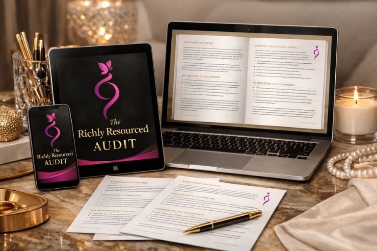 The Richly Resourced Audit looks at how everything is working together: your business, your body, your nervous system, your finances, your life stage, your goals.